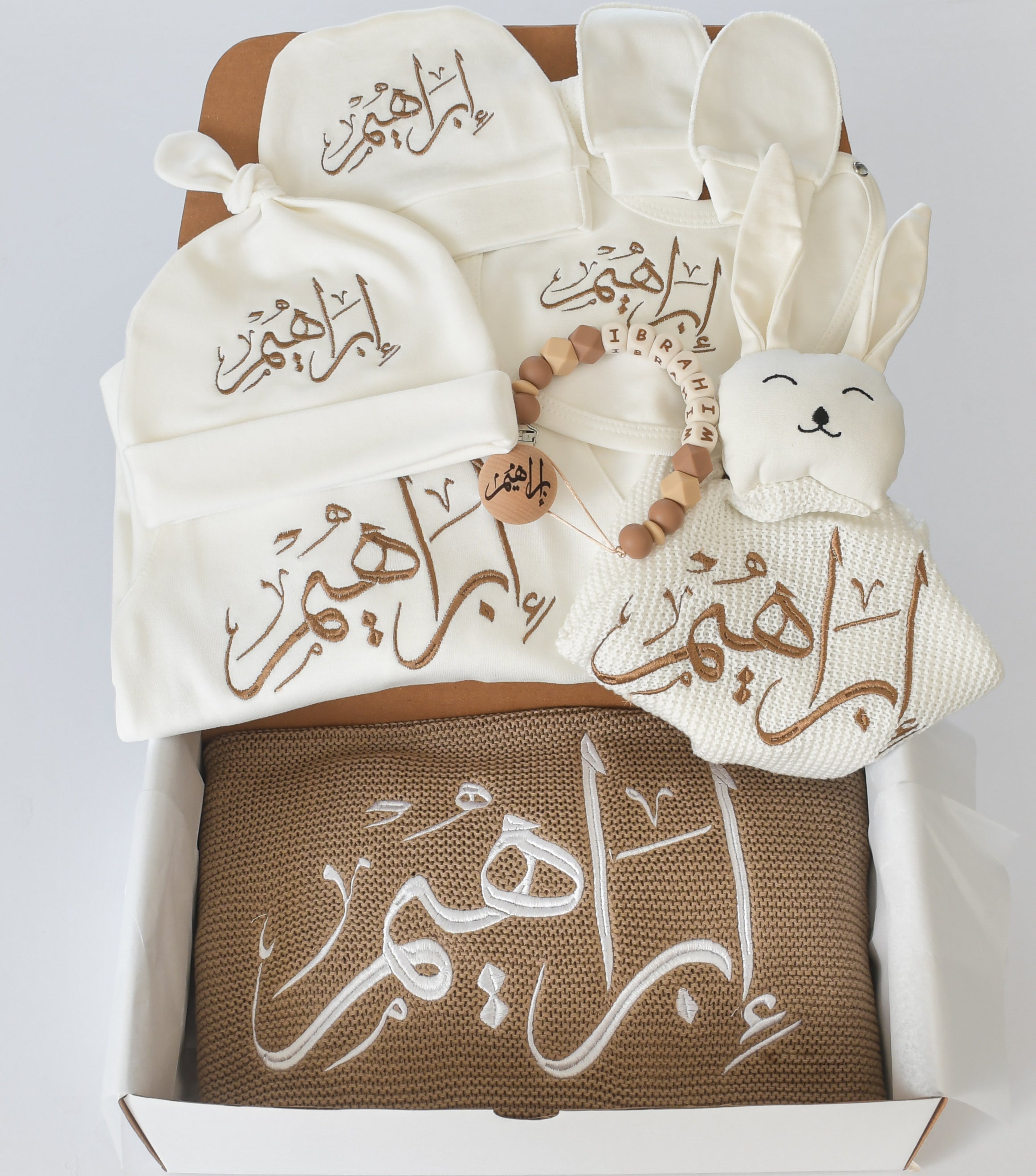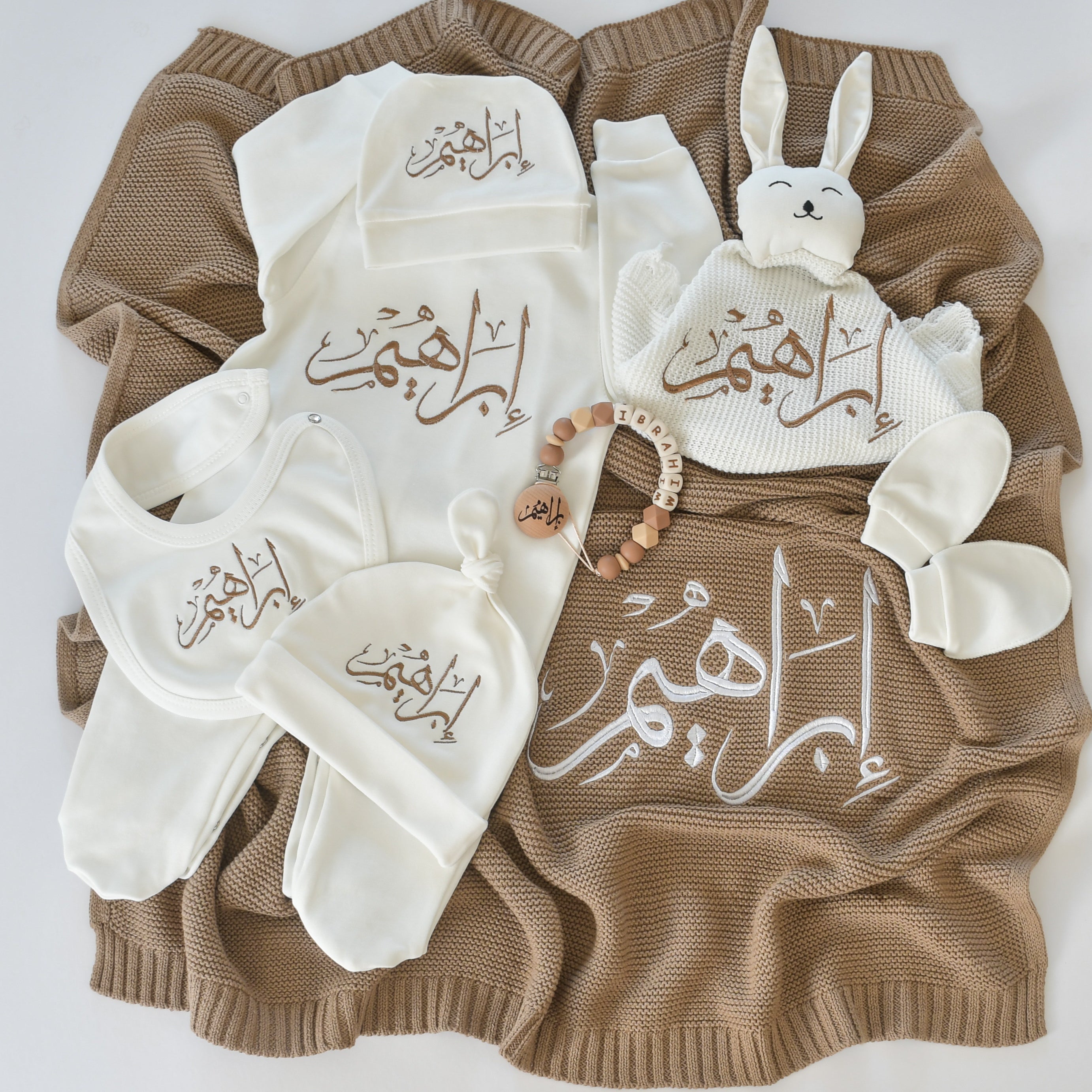 Customizable: Embroidered with the baby's name for a personal touch. Please mention baby name in English/Arabic in the note box and select font style.