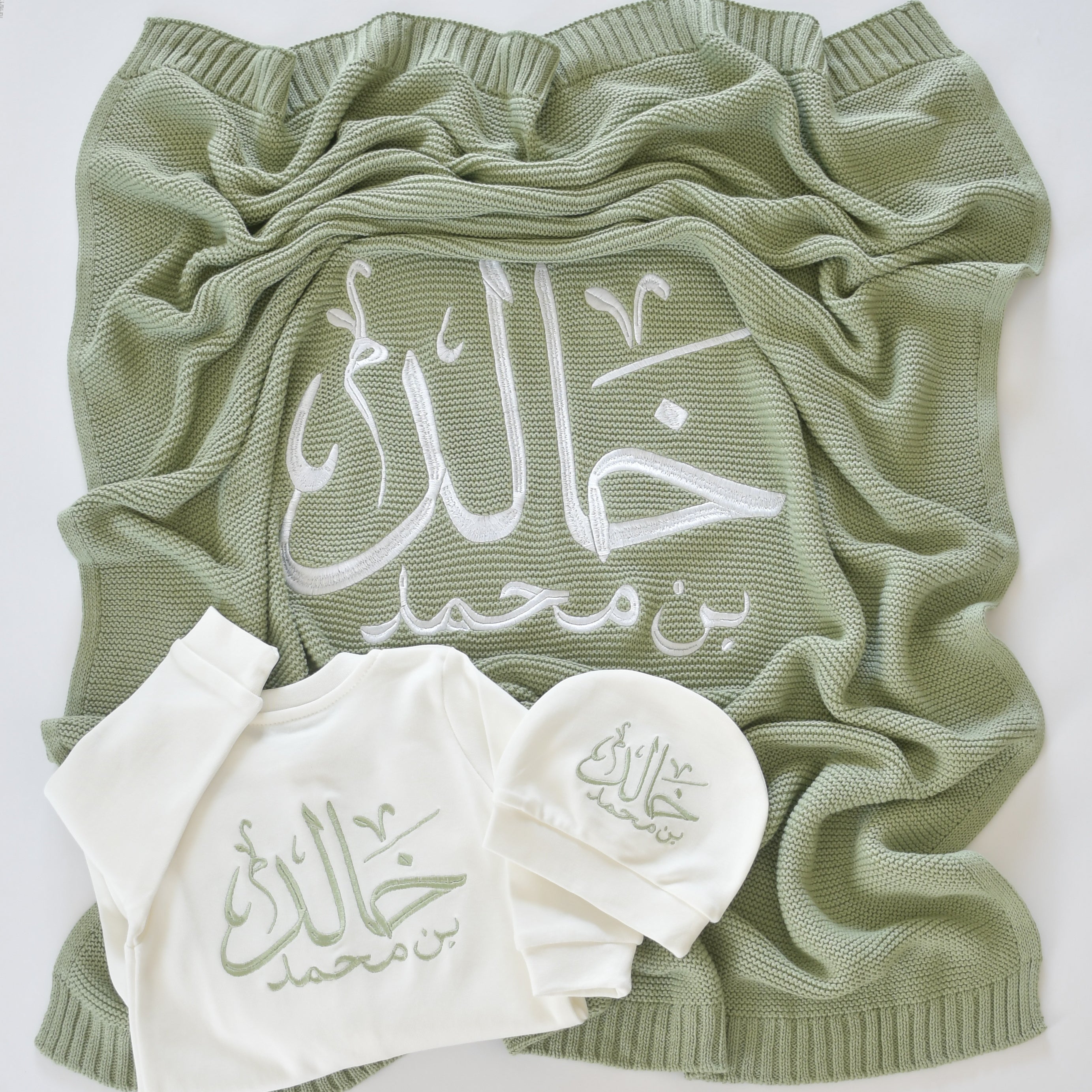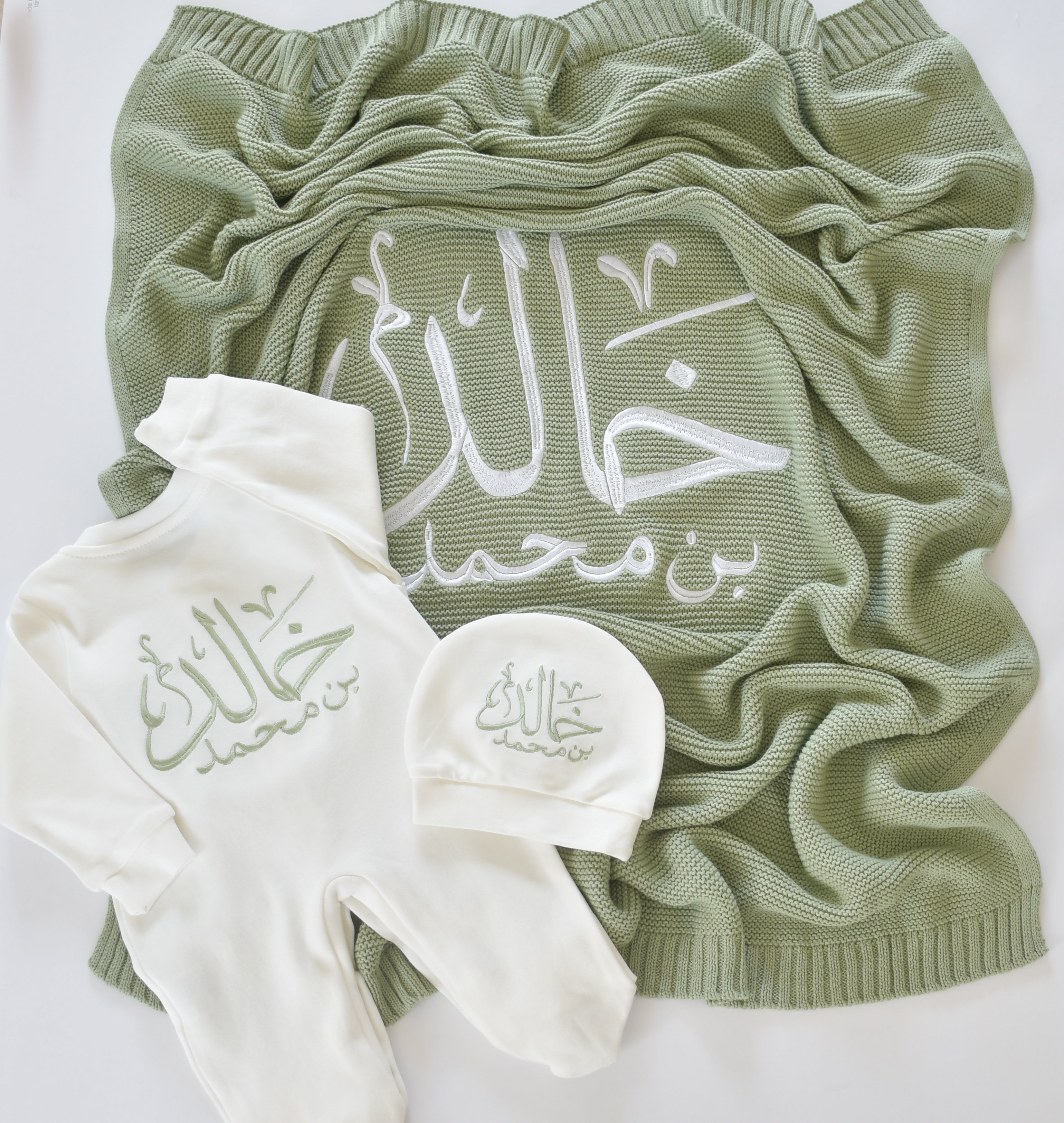 Customizable: Embroidered with the baby's name for a personal touch. Please mention baby name in English/Arabic in the note box and select font style. Once order is confirmed, we will contact you on whatsapp to confirm name font design.